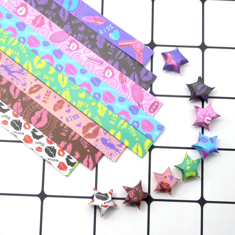 Star origami printing colored paper strip creative diy lucky star tube wishing drifting bottle stack small five-pointed star handmade paper