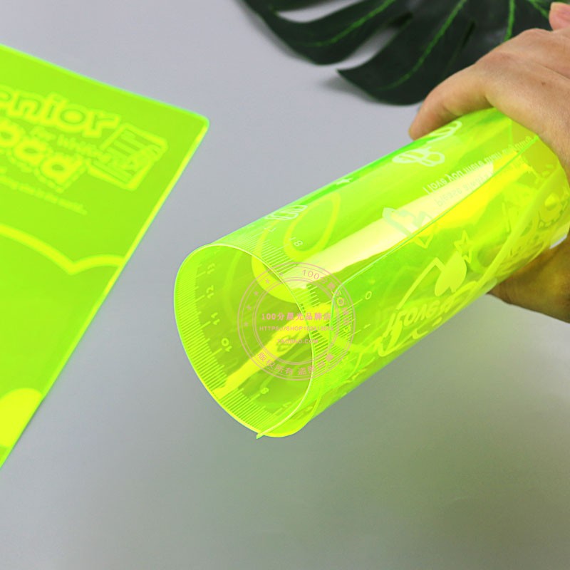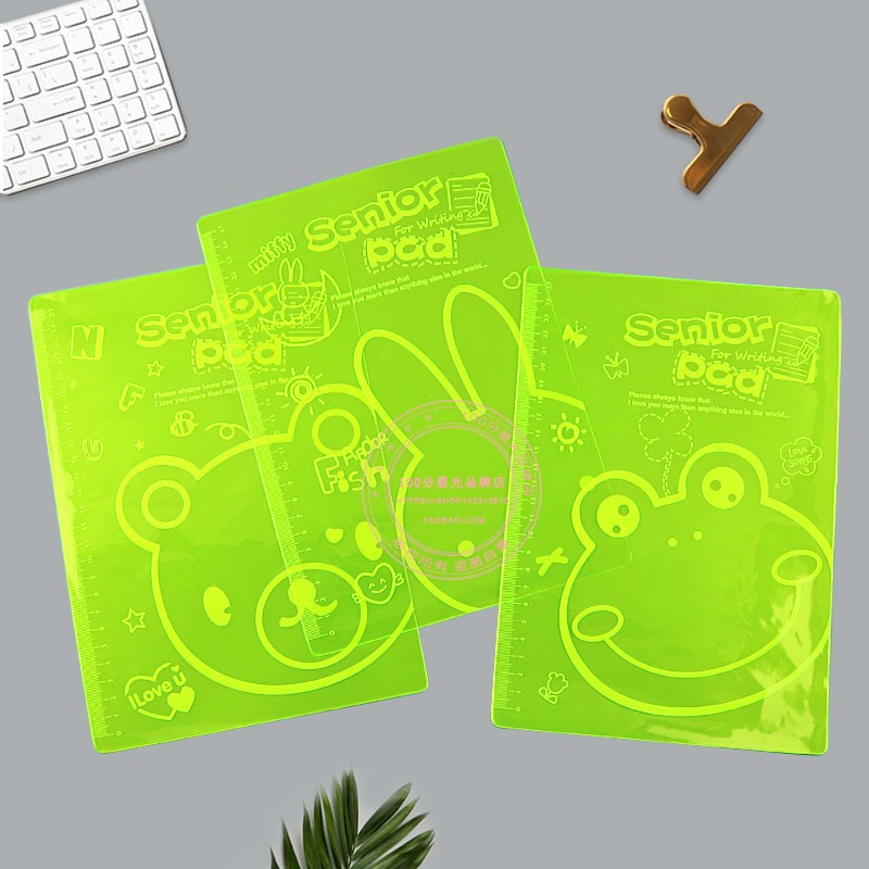 A4 Desktop Transparent Base Plate Elementary Students Cartoon Drawing Exam Writing Upholstered Board Fluorescent Green With Scale Book Cushion