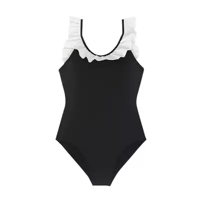 ins wind color ruffle halter straps Small fresh conservative thin one-piece small chest gathered hot spring swimsuit female