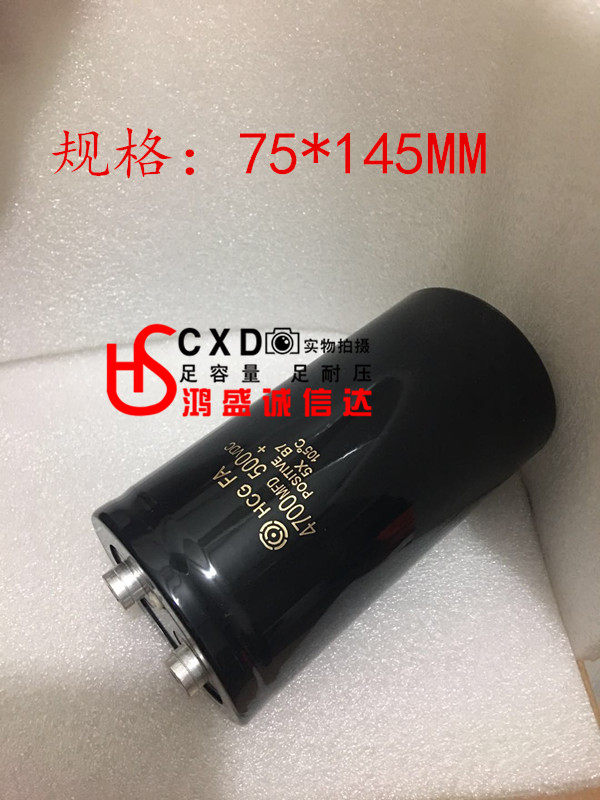 Brand new imported 500V4700UF electrolytic capacitor 75 * 145MM bottom with M12 bolt column