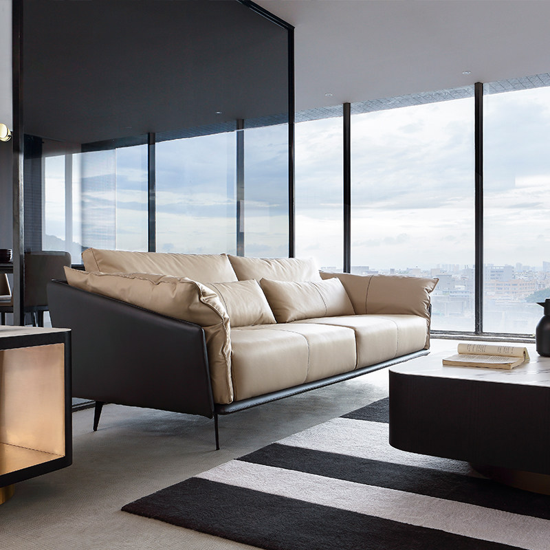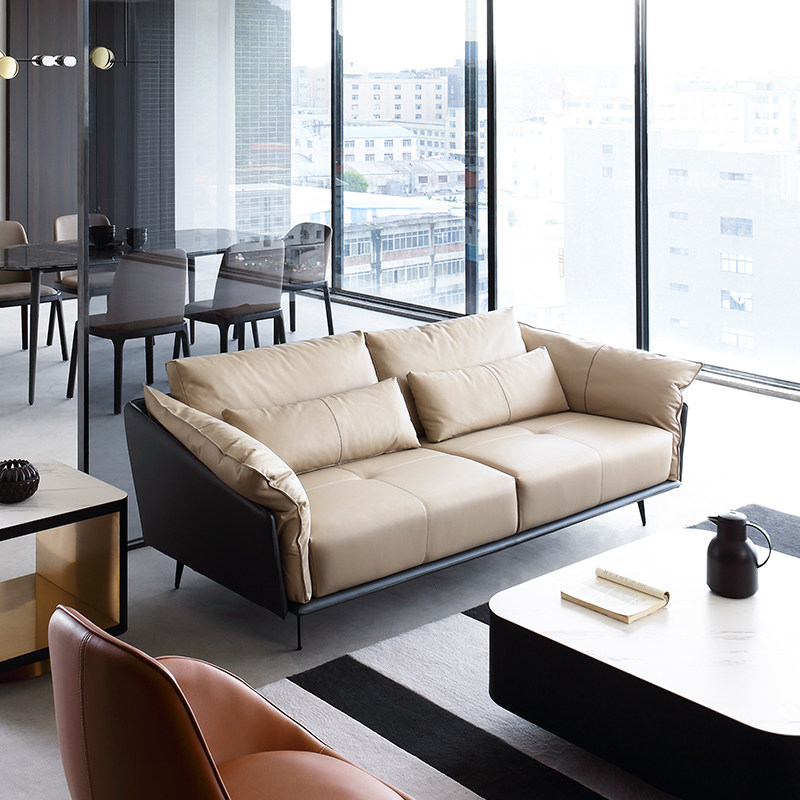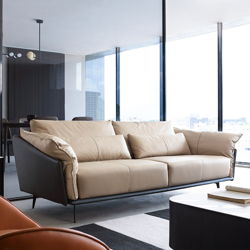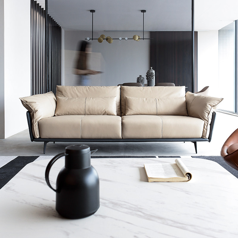 Ruen Italian modern minimalist style down top layer leather sofa Nordic two or three combination leather sofa