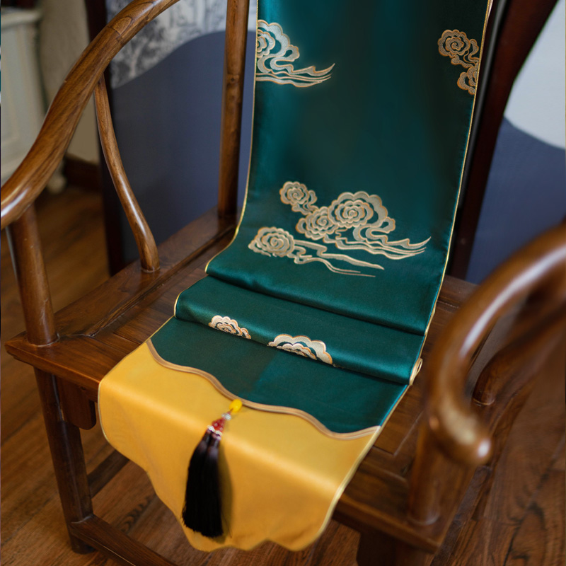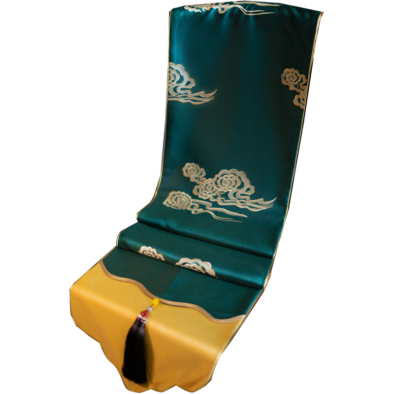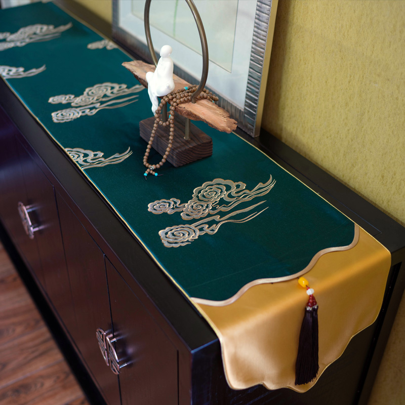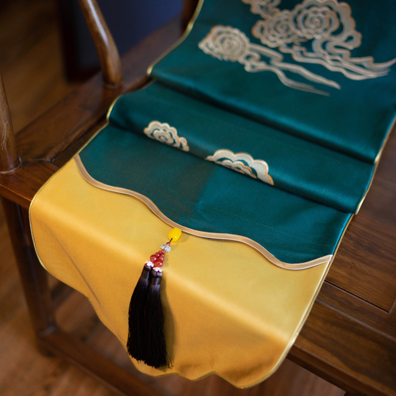 Dark green moire embroidery table flag Chinese Zen classical New Chinese tea table tablecloth Bed flag Bed tail towel tea table flag