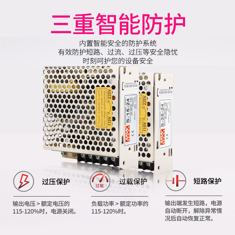 Minwei 220 24V 24V 12V 12V DC 5V switching power supply monitoring S-120 150200350 W transformer DC