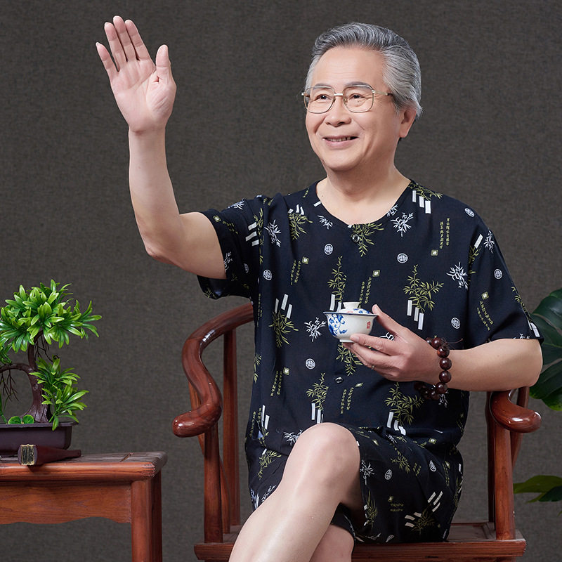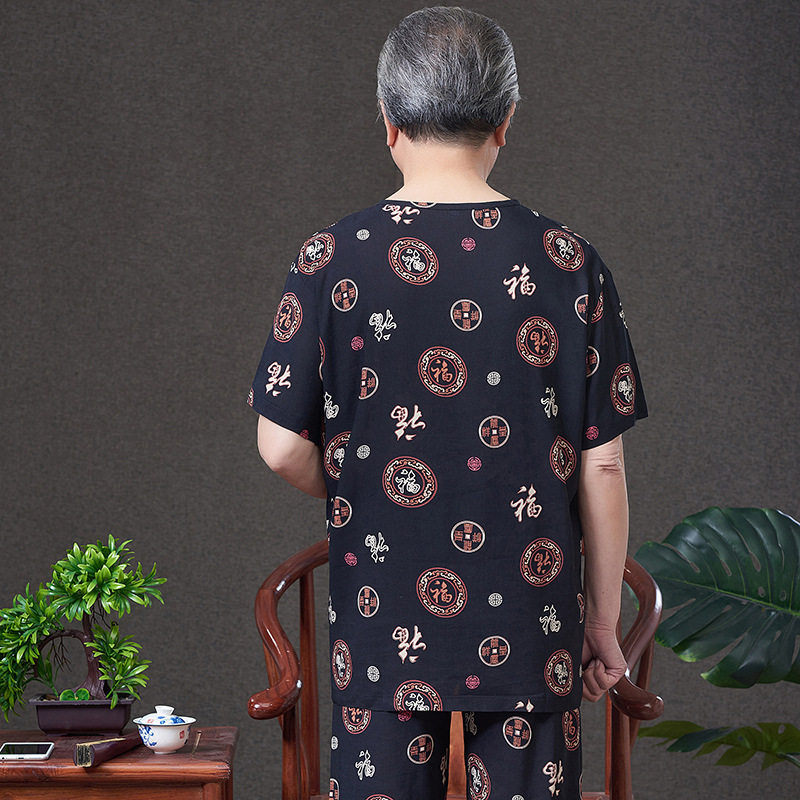 Pyjamas Men's cotton silk cardiovert clothes Home Senile Silk Dad Old Man Suit Artificial Cotton Linen Thin grandpa Xia