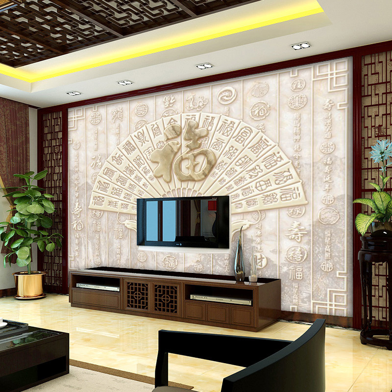8D three-dimensional relief integrated board wall Chinese TV background high-gloss painting 3d modern minimalist living room bamboo wood fiberboard