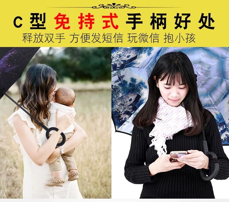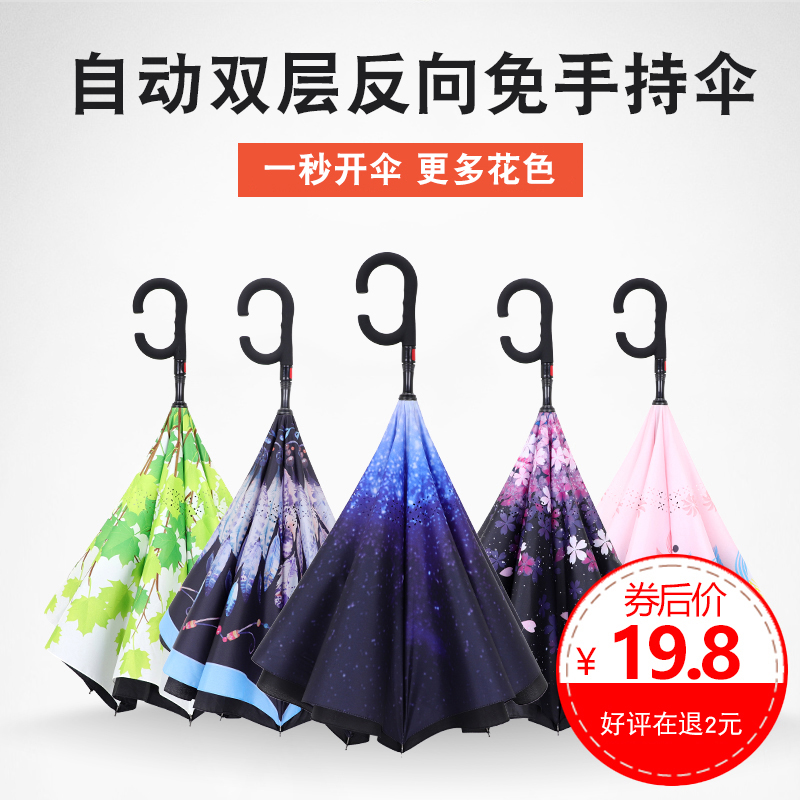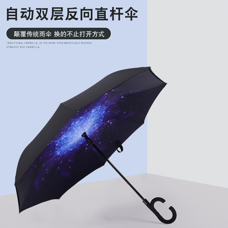 Double reverse umbrella men's large oversized car carrying umbrella women's sunny rain dual use automatic long handle double straight rod umbrella