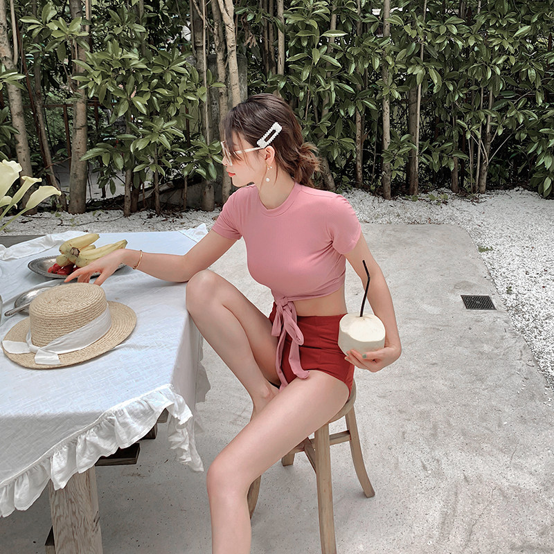 Mu Lang swimsuit female conservative student small fresh Korean ins wind two-piece two-piece cover belly thin high waist