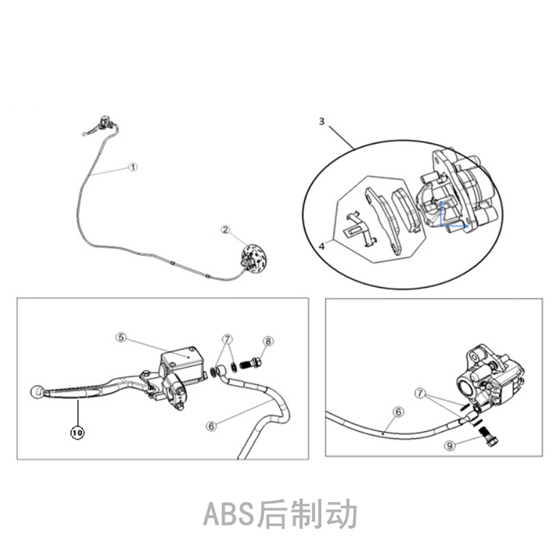 1- Rear brake assembly 3- Rear caliper assembly 7- Copper washer