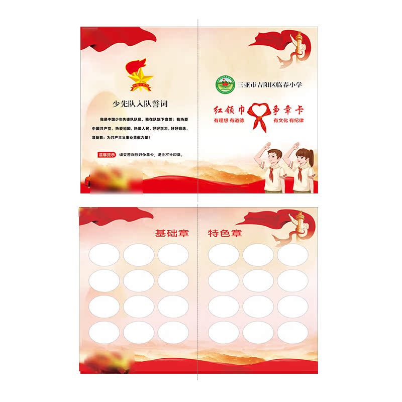 Elementary and middle school students' young pioneers fight for the chapter card half-fold card to make the eagle fight for the chapter collection card red scarf point card