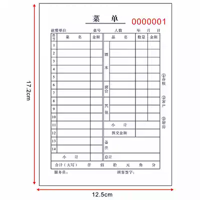 36KC restaurant menu, one single, two, three, four couplets, no carbon compound, single order