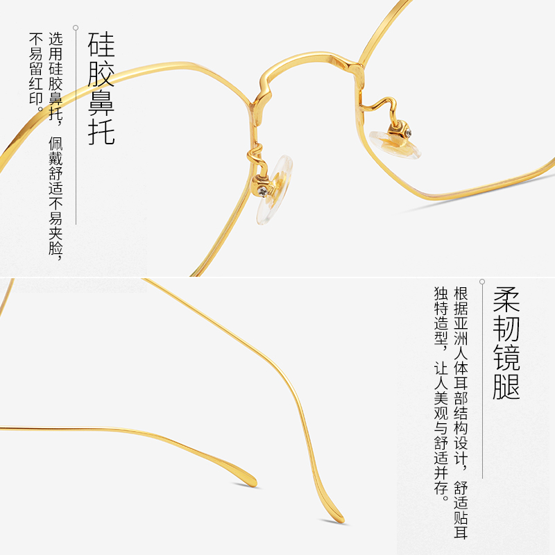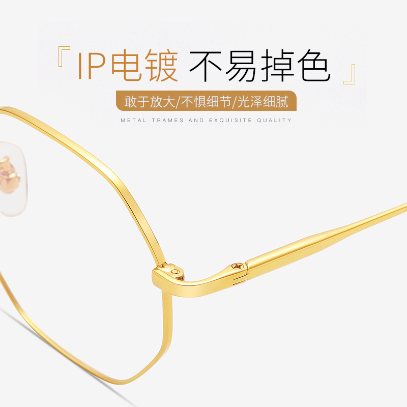 Gold single frame, black gold single frame, rose gold single frame, silver single frame, black single frame frame 0 degree anti-blue lens (color message) frame colorless myopia lens (degree