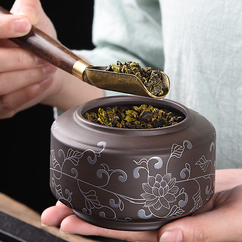 Haofeng Purple Sand tea pot Kung Fu tea household creative storage pot Tea ceremony accessories Moisture-proof large Pu'er tea leaf pot