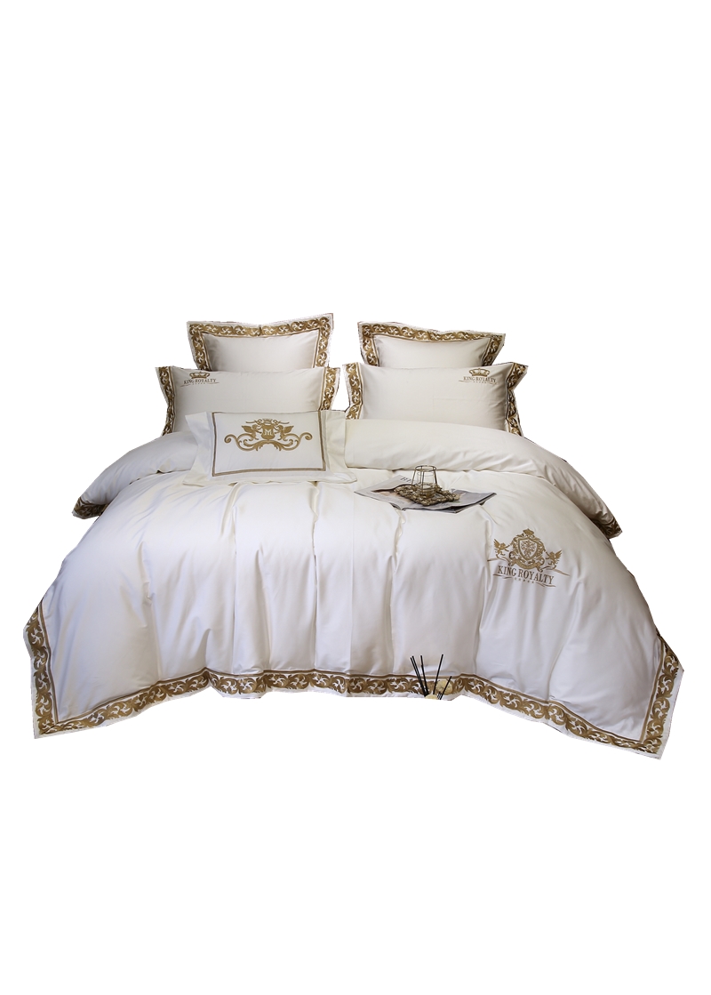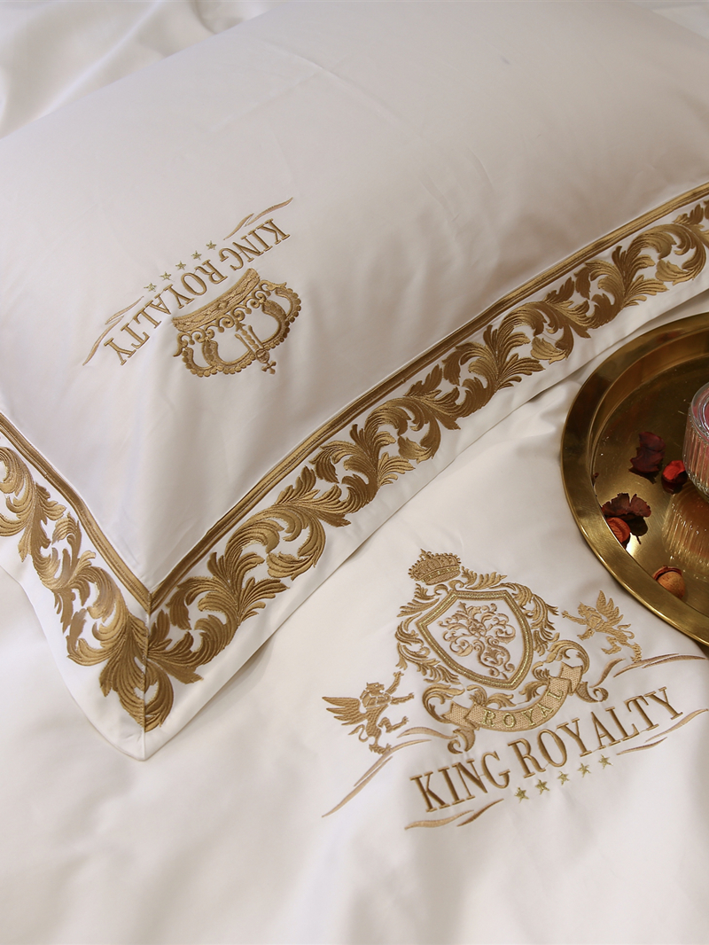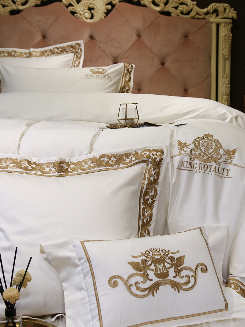 Palace windy white 100 Egyptian long suede cotton four sets European-style gold thread embroidery light and luxurious all-cotton bed supplies