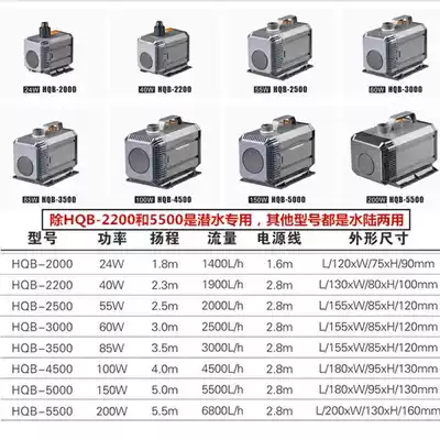 HQB-2000 24W send 2 meters water pipe 16mm HQB-2200 40W can not be land to send 2 meters 16mm water pipe HQB-2500 2