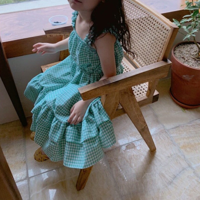 2020 Summer Dress New Children Dress Girl Cuddling Bag Skirt Children CUHK Children's Pure Cotton Plaid With Dress Temperament Princess Dress