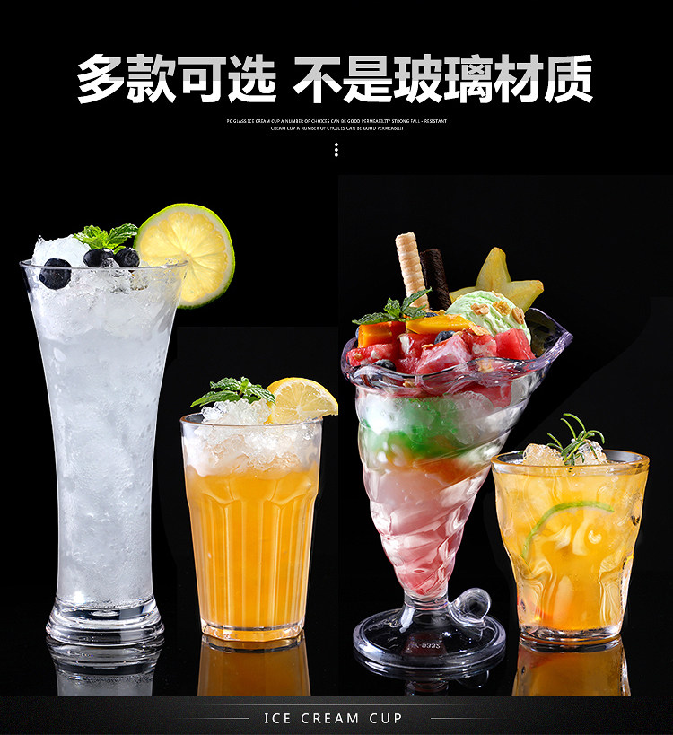 Acrylic milk tea milkshake juice cup Creative transparent PC Beer drink cold drink Ice cream cup Heat-resistant water cup