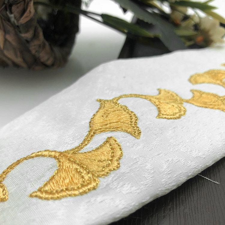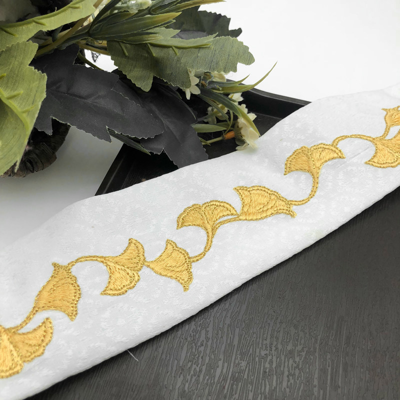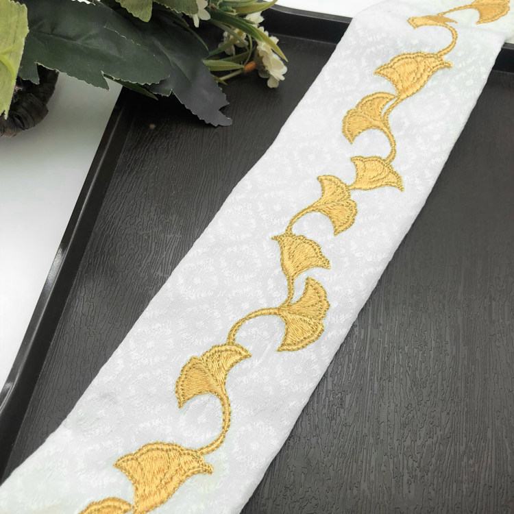 Le Xinglong textile embroidered ginkgo biloba leaf wrapped gold thread Hanfu skirt head skirt edge collar collar lace hako