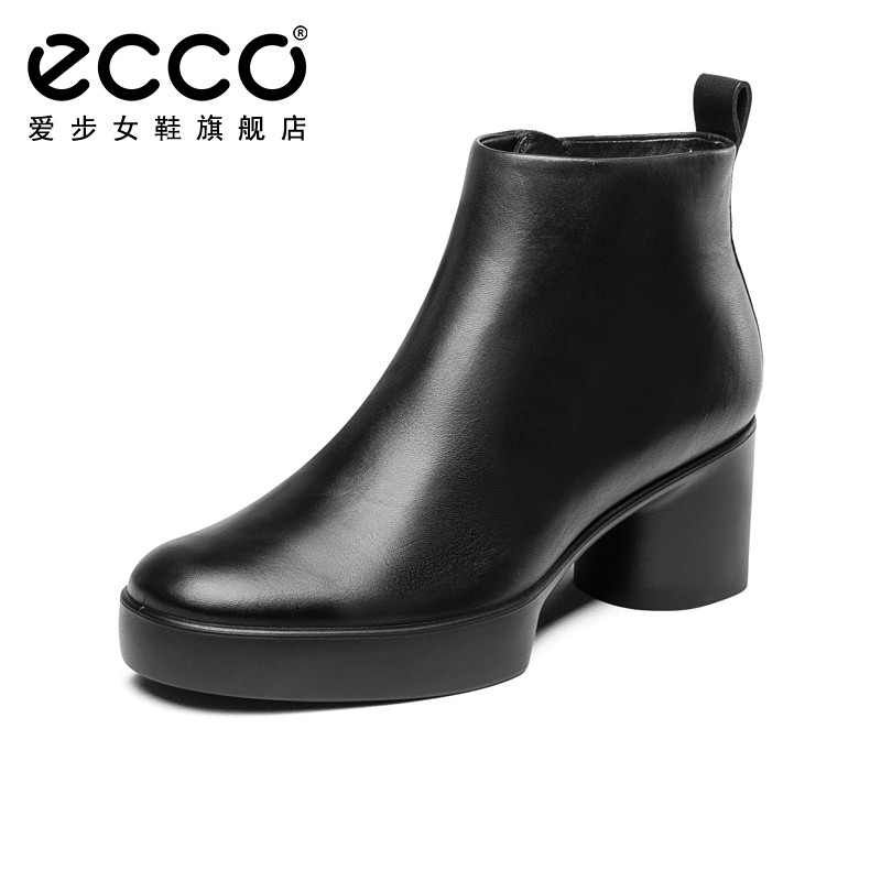 ECCO Love Bu High-heeled Women's Boots Winter Thin Boots Thick-heeled Small Leather Boots Short Boots Women Sculpture Rhythm 207633