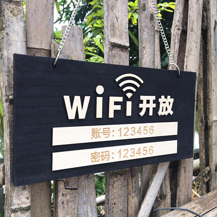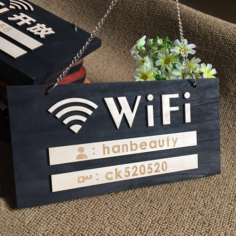 Solid Wood Dining Room Wireless Internet Prompt Card Guest House Free Logo sign WIFI signage list password customized to do