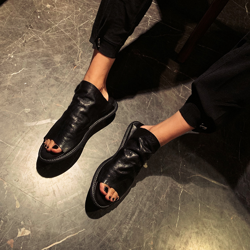 origin guidi horse skin dark retro handmade slippers lazy people wear fashionable platform Roman slippers women