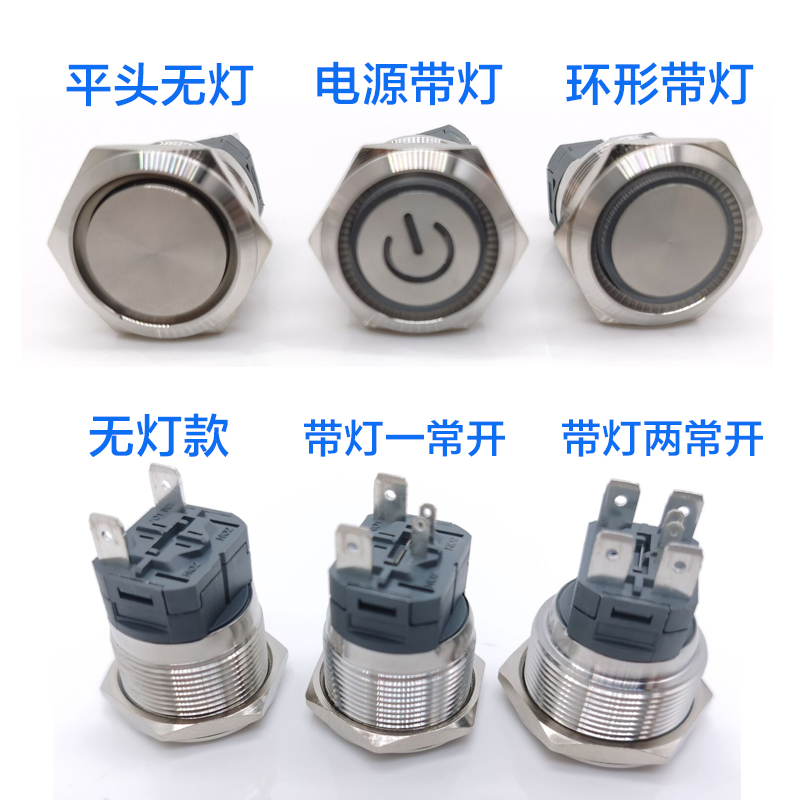 Waterproof high current metal push button switch 16A self-reset self-lock with lamp power supply start and close 16-25MM