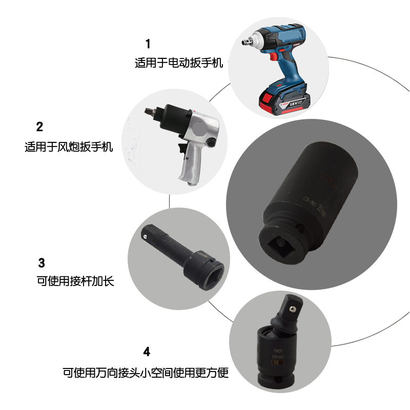 YWER Imports Pneumatic 1 2 lengthened sleeves Electric wrench 12 5mm Wind cannons lengthened nut hexagonal sleeves-Taobao
