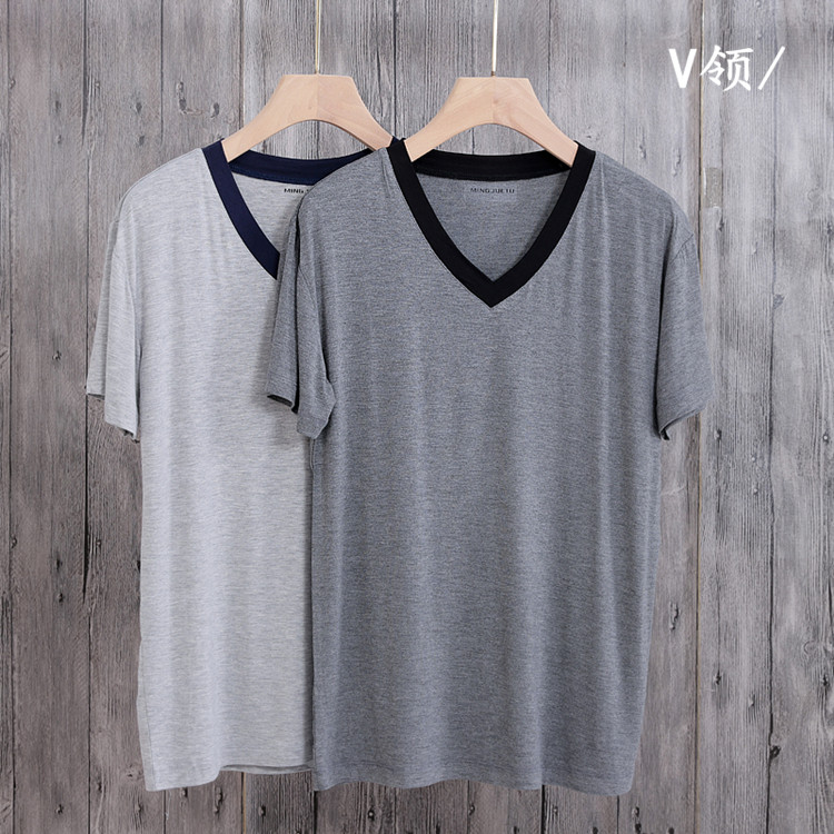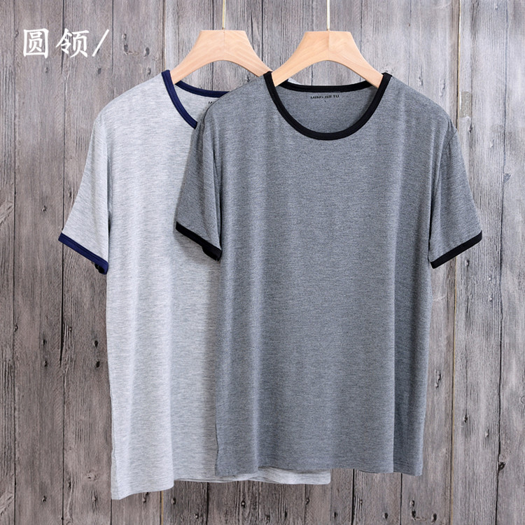 Summer pajamas men Ice Silk modal short-sleeved T-shirt stitching base shirt men's clothes half-sleeved tops home wear