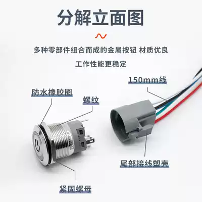 Self-reset metal button round self-locking waterproof power button switch jog LED with light 12 16 22MM