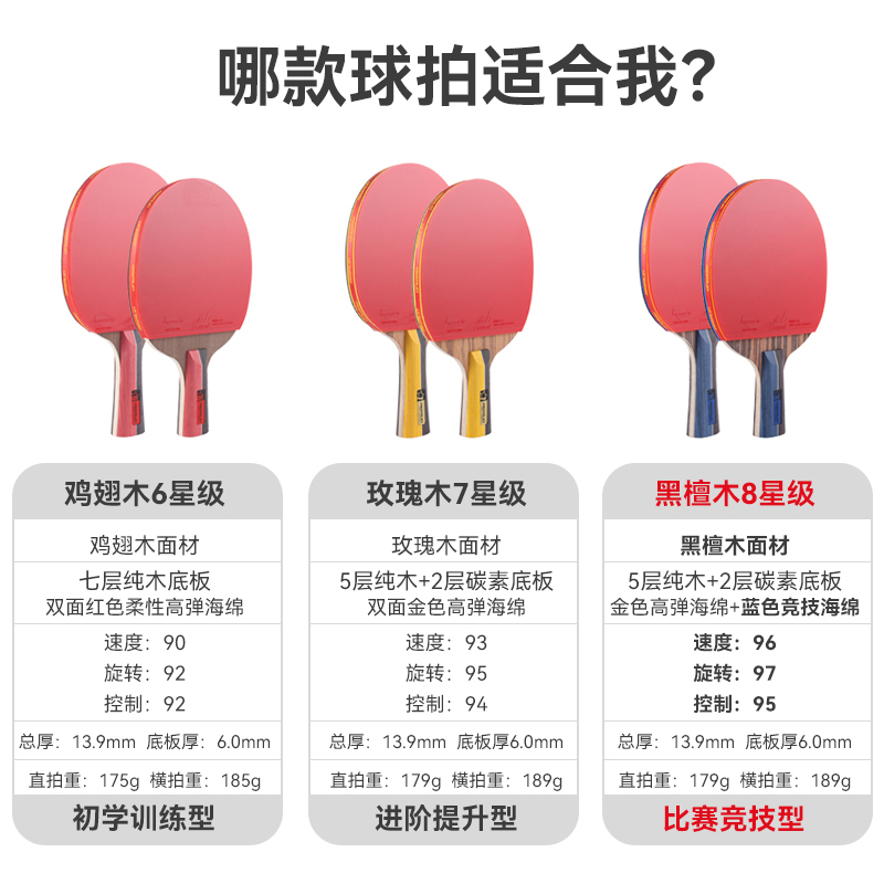 Diberry Ping Tennis Binar 6 stars and 8 stars 2 with table tennis straight - patted single - patted racquet