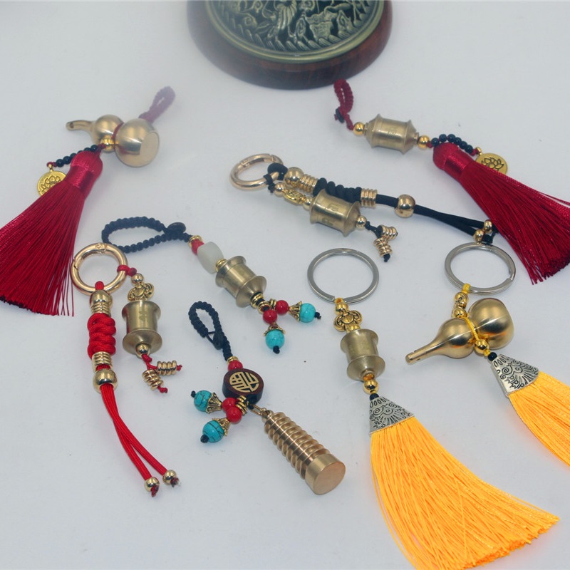 One type of prayer wheel, one type of prayer wheel, two styles of random color, three styles of gourd, and random style of rope, five styles of gourd pendant, one style of pagoda pendant, one style of gourd, one style of ear spoon, style of gourd, style of three Guangong pendants, and a dustpan