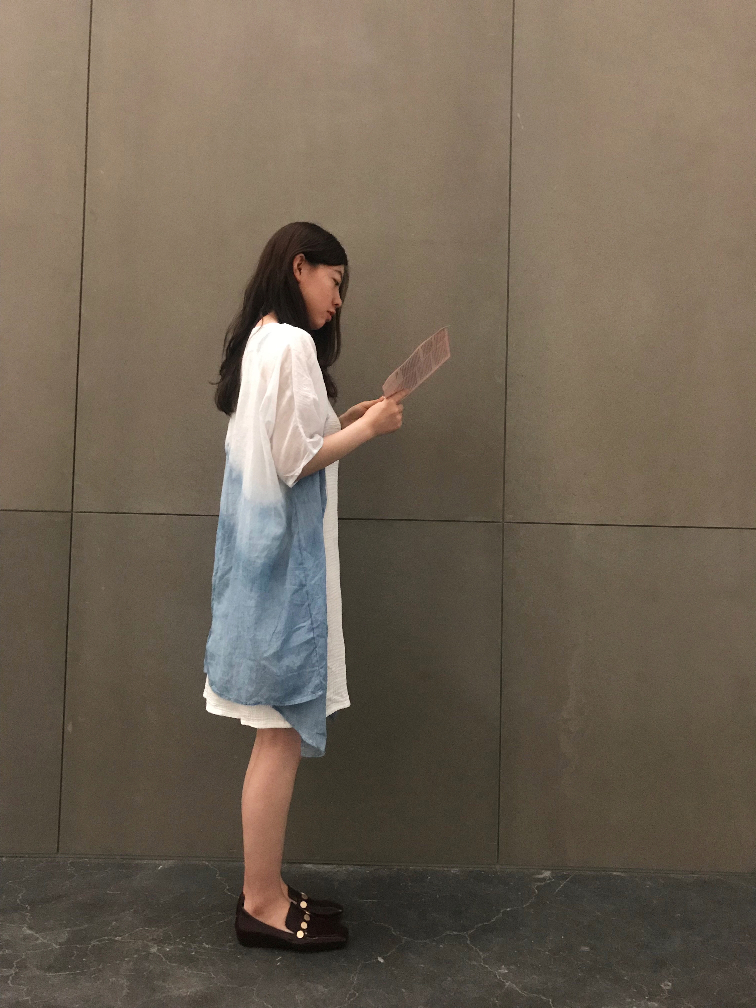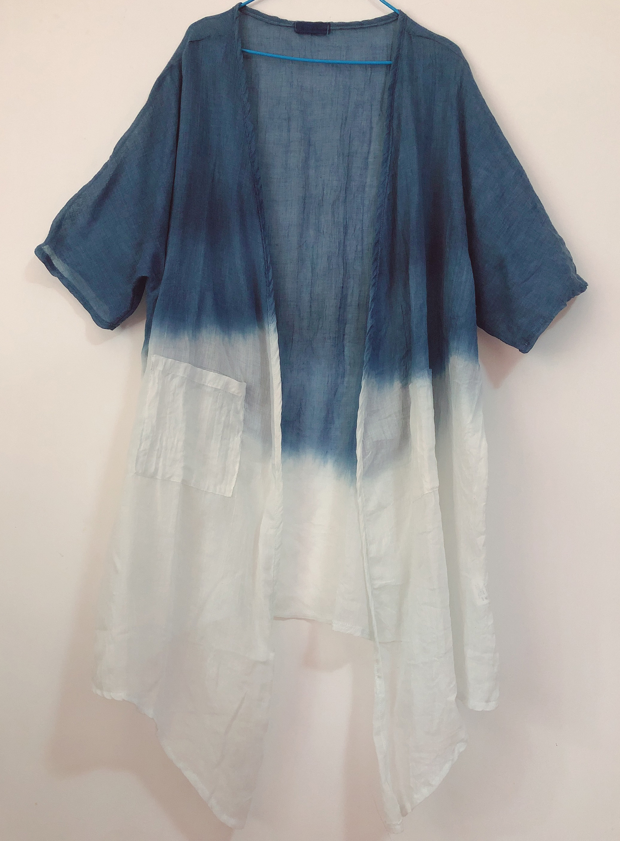 Original design new handmade blue dyed grass and wood dyed tie dye thin cotton linen diy sunscreen clothing long version air conditioning cardigan