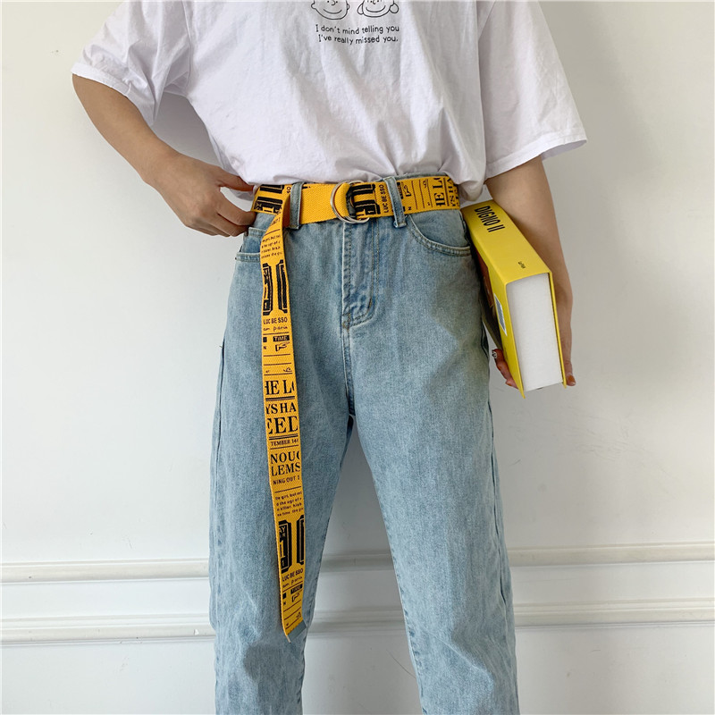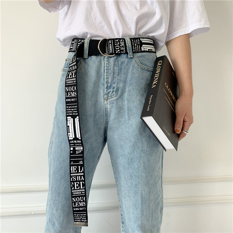 South Korea's Harajuku style canvas belt female simple all-match student trend double-ring buckle jeans cloth belt belt decoration