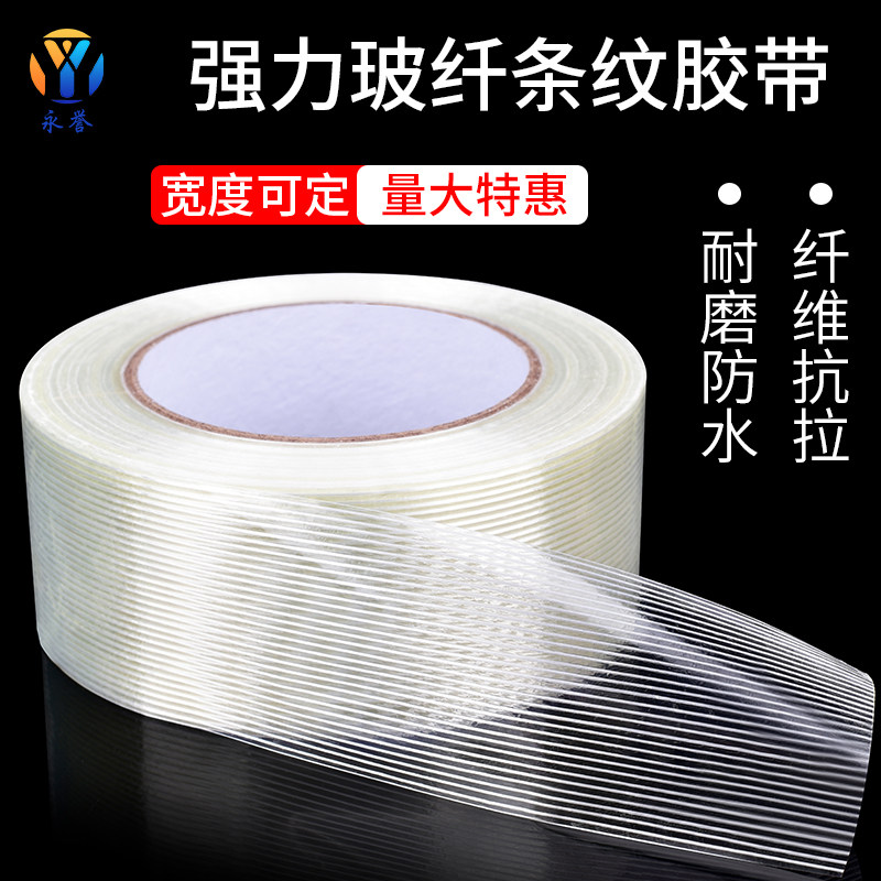 One word fiber tape Single - sided glass fiber super - powerful heavy weight packaging electrical mode refrigerator fixed binding tensile electrical steel plate bundled fiber single-sided tape