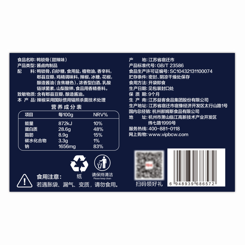 Sweet and spicy 140g 5 scents 140g sweet and spicy duck lock bones 108g