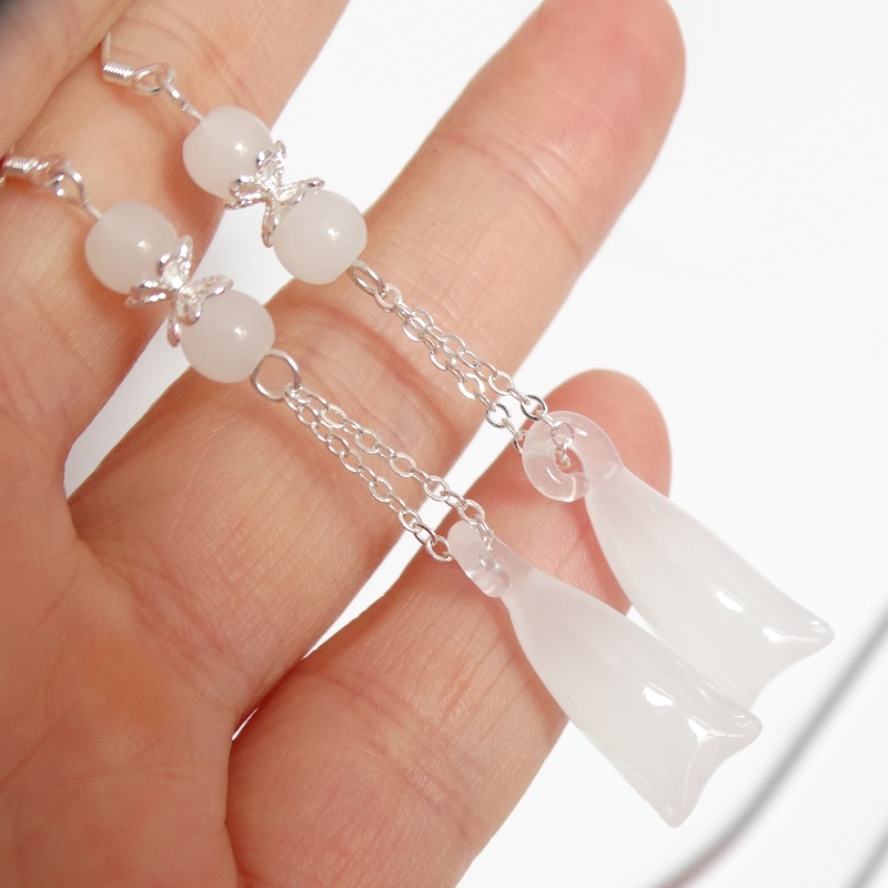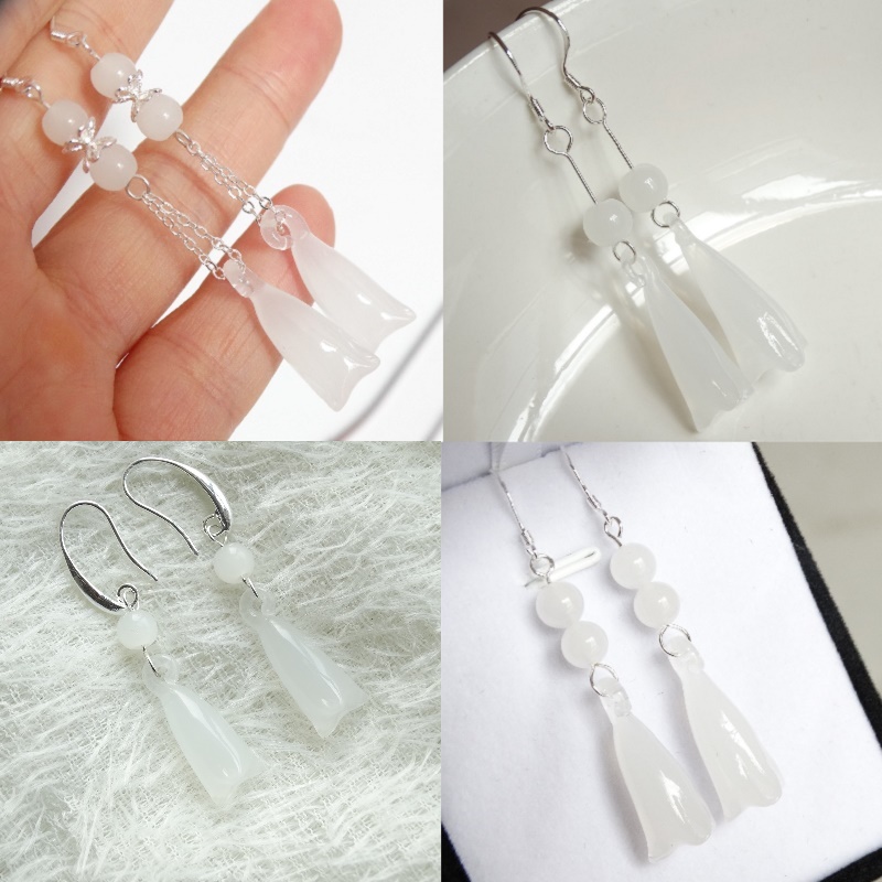Trendy ancient style long version of white magnolia flower earrings sterling silver earrings pendant necklace tassel all-match four seasons earrings women