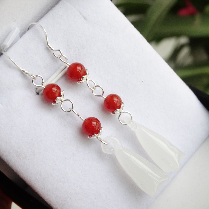 1 Liu Shishi's same style of lucky magnolia flower earrings 1 red bead model to attract wealth and prosperity, magnolia flower earrings 1 green jade to attract wealth and prosperity, magnolia flower earrings 2 green jade beads to attract wealth and prosperity, magnolia flower earrings 2 red jade beads