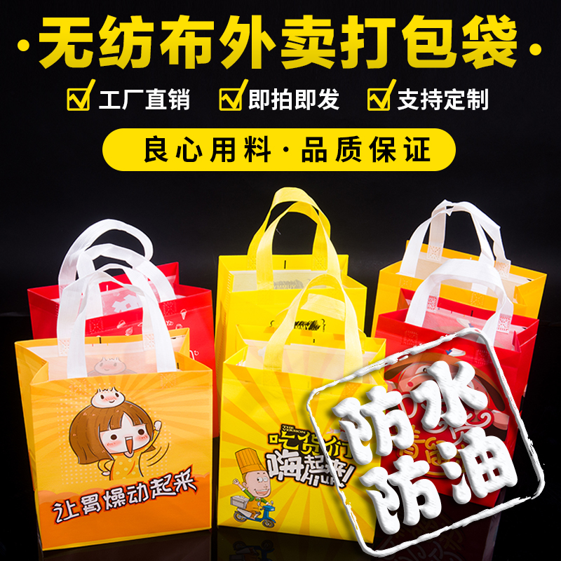 Delivery non-woven bag packaging bag waterproof packaging bag fast food bento porridge gift advertising handbag custom lg