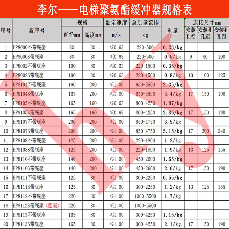 Lear Polyurethane Buffer HP8002 8104 8107 8108 8110 8111 8112 8113 05