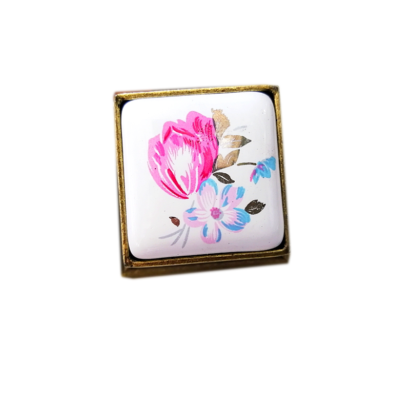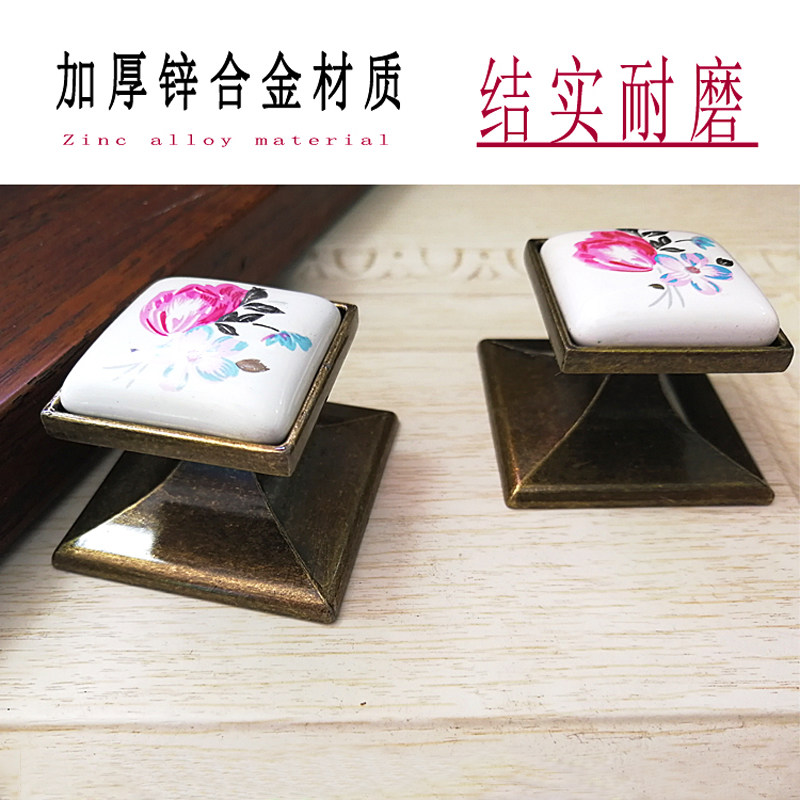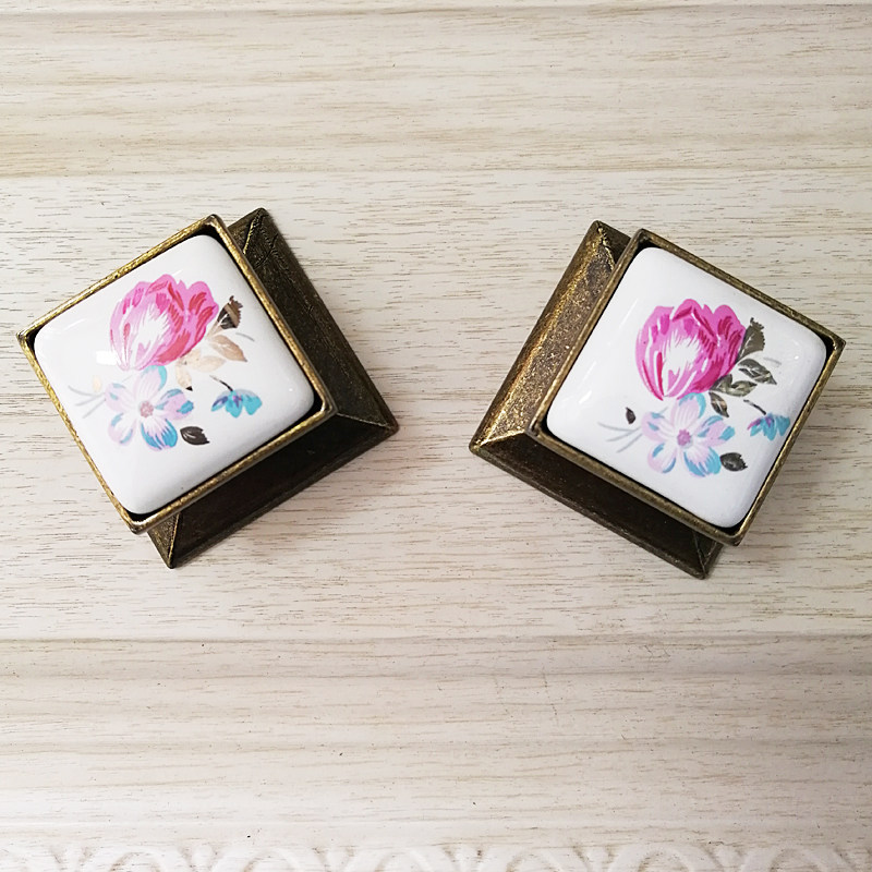 European and American retro square pink cabinet door simple personality door handle bronze drawer shoe cabinet small handle single button