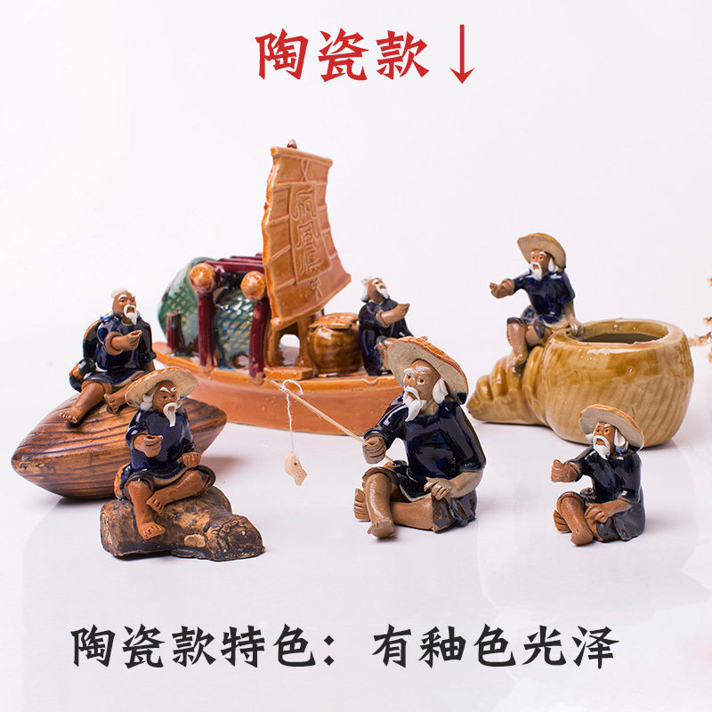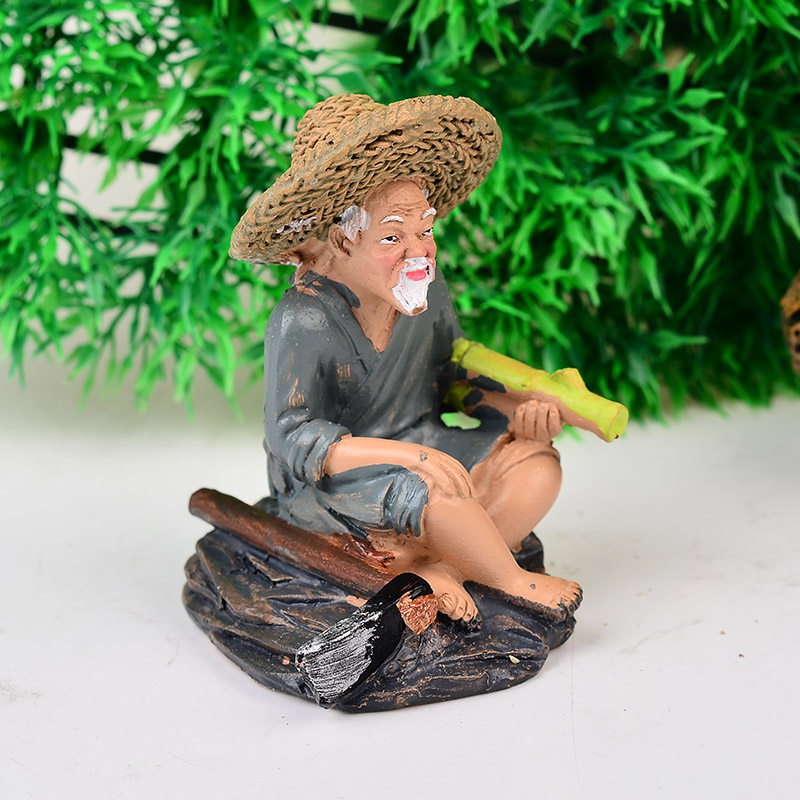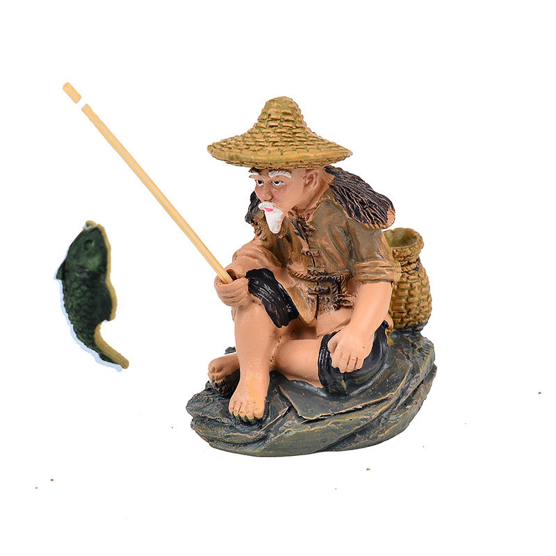 Fish tank decorated with view ceramic fishing weng resin fishing old man absorbent stone false mountain bonsai swinging piece micro-landscape man-Taobao