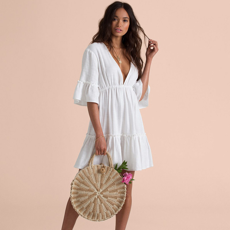 2019 new white slub cloth sexy leaky back short skirt single piece resort spa sunscreen bikini swimsuit blouse