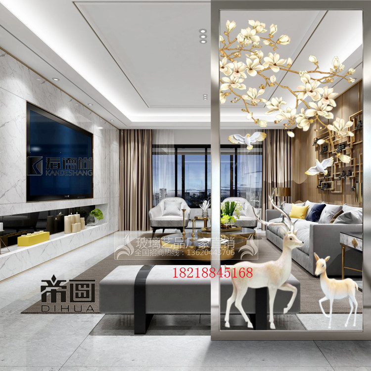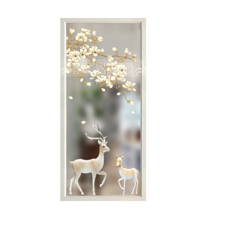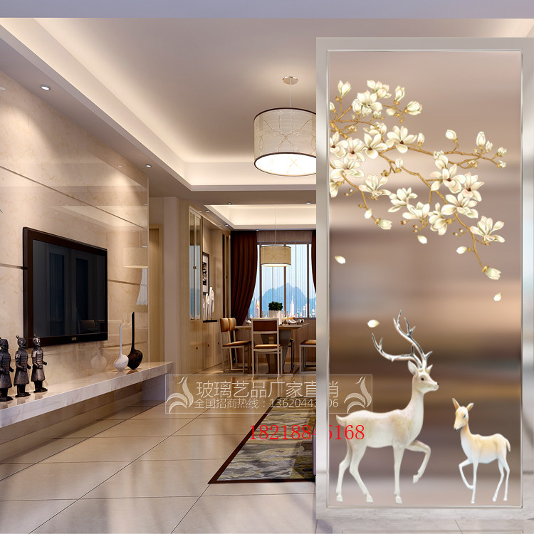 Art glass partition screen porch background wall home decoration living room dining room frosted shoe cabinet simple transparent deer