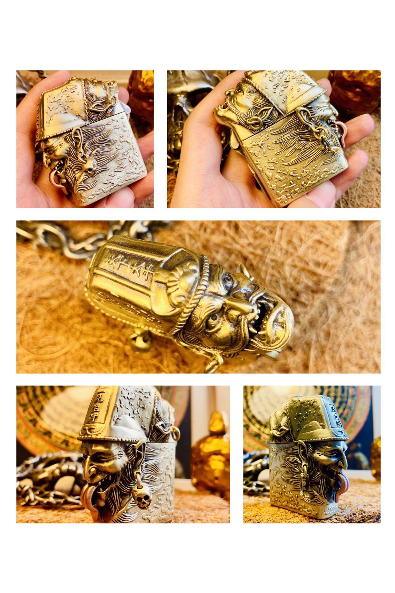 Pure copper handmade kerosene windproof lighters a black and white impermanence lighter retro collection gifts