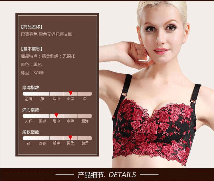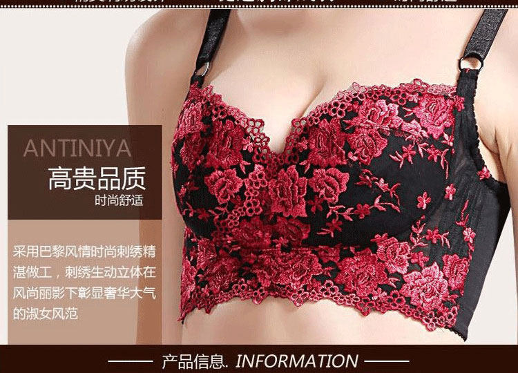 Antinia No Steel Ring No Sponge Bra Thin Cups Rose Red Flowers Short Bra Poly to collect the undermilk underwear