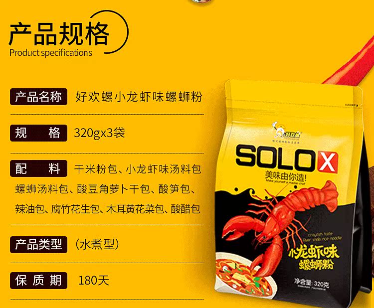 Dried Rice Noodles Crayfish soup Wrapped in snail soup Wrapped in capers horn sour bamboo shoots Peanuts Bean curd Fungus Yellow flower vegetables