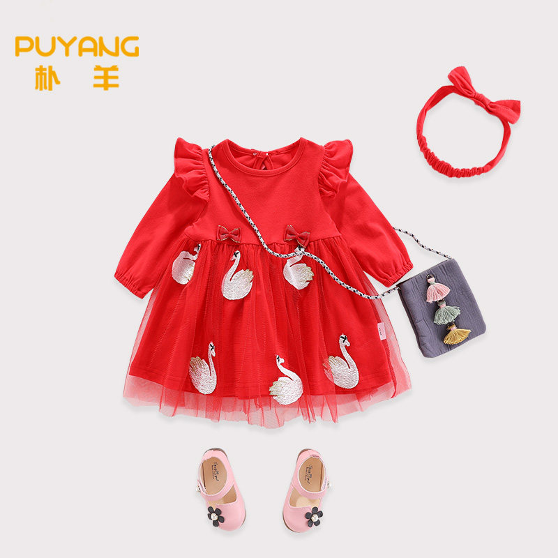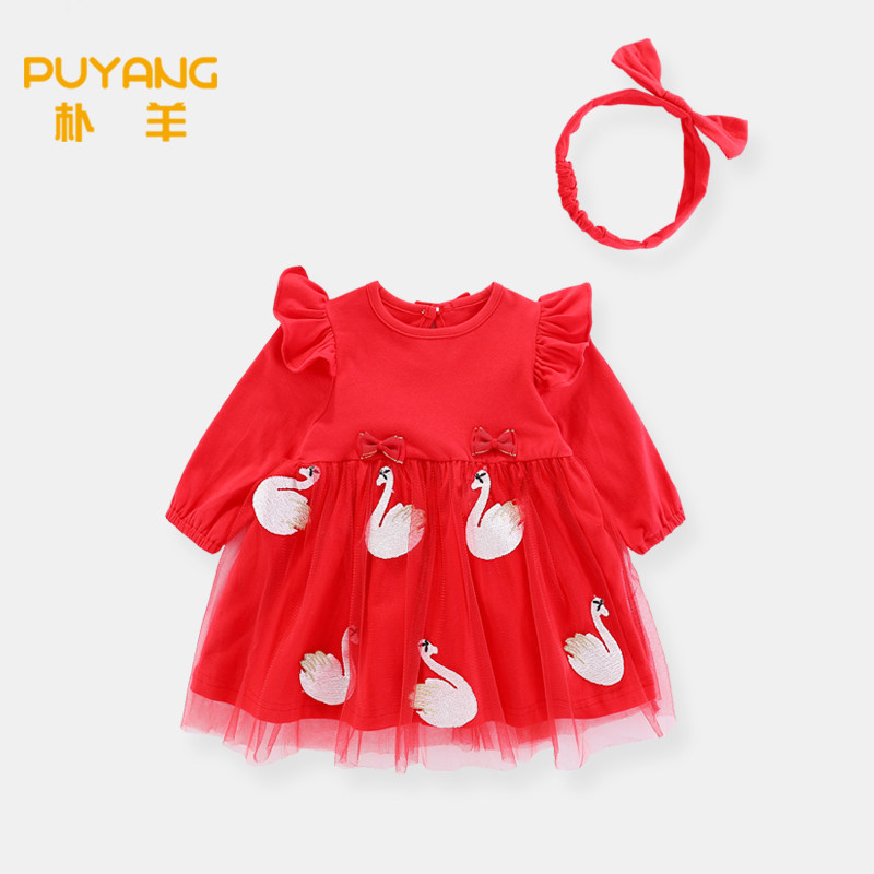 Spring and autumn children's red princess dress foreign style long-sleeved baby girl dress autumn dress one-year-old girl dress autumn - Taobao