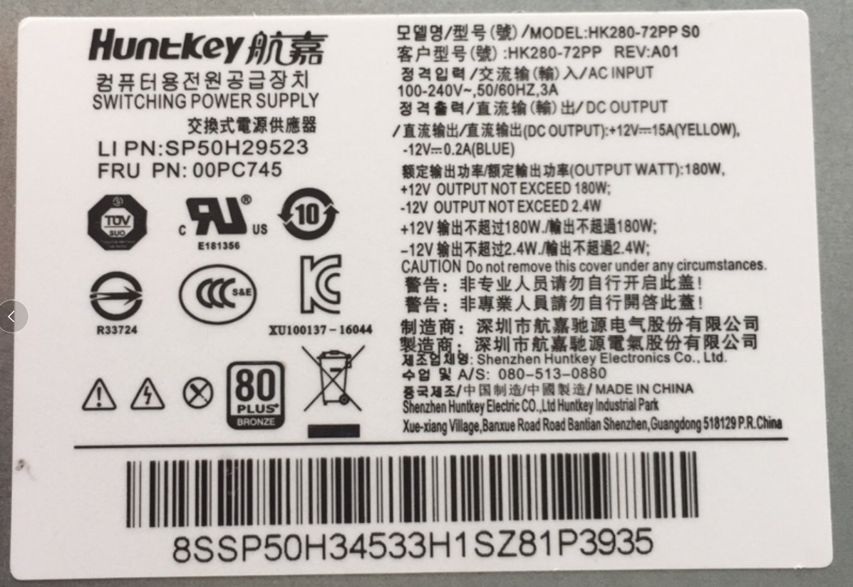 Lenovo HK280-72PP HK280-72PP PA-2181-2 PCG010 FSP180-20TGBAB 10 FSP180-20TGBAB pin power supply