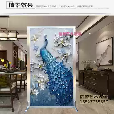 New Chinese art glass living room entrance aisle TV background wall screen modern simple relief transparent Peacock