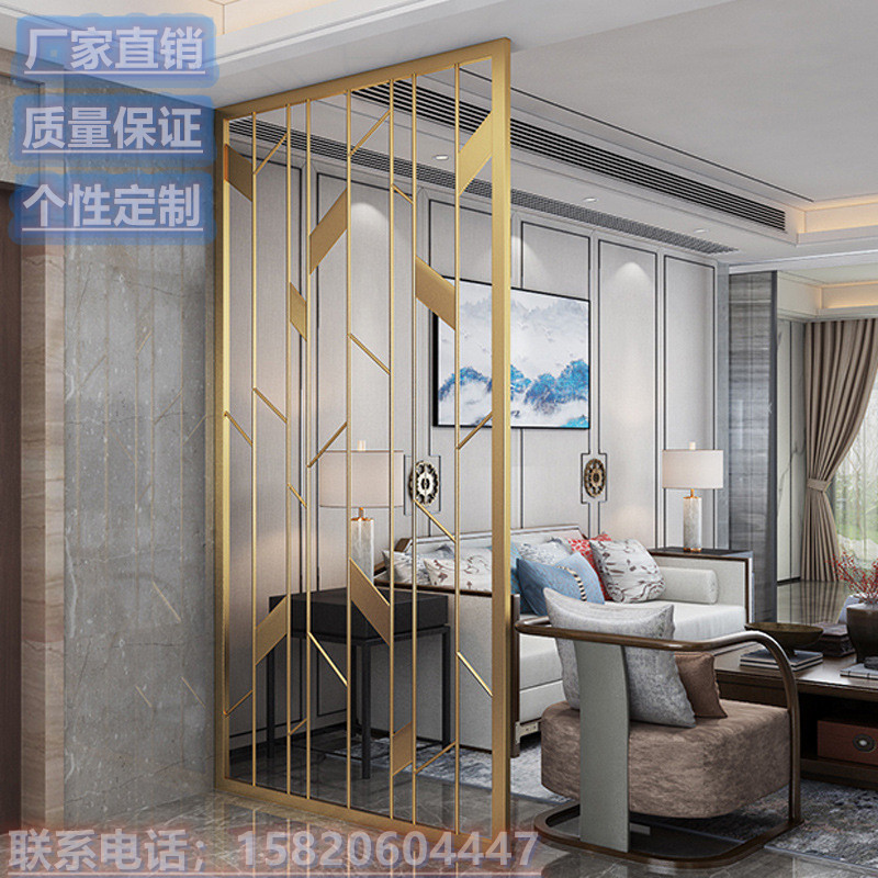 New Chinese simple light luxury stainless steel screen living room entry porch partition hotel metal decoration hollow lattice