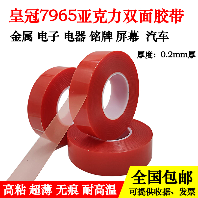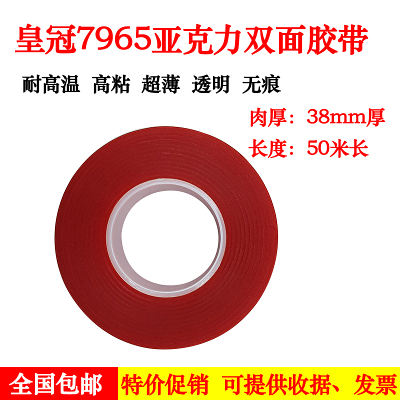 Crown 7965 double-sided adhesive tape with red film transparent double-sided adhesive waterproof and resistant to high temperature ultra-thin double-sided adhesive tape